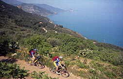 ...und so meinen wir das auch: Mountainbiken für jedermann haben wir uns ausgedacht, um auch dem Weniger-als-Halbprofi, dem ganz gewöhnlichen Radler von der Stadtstraße die Möglichkeit zu geben, das Naturschutzgebiet der Madonien, die Flora und Fauna dort einmal anders zu erleben als immer nur vom Auto aus und dennoch nicht 1600 Höhenmeter im Sattel bewältigen zu müssen. (Die Touren ohne Shuttle - die für den sportlich anspruchsvollen Mehr-als-Halbprofi - finden Sie unter dem Stichwort Sport-Mountainbiken.) |
