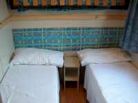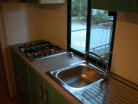 Alle Fesnter lassen sich mit Rolläden verdunkeln. Im Aufenthaltsraum, gleichzeitig Esszimmer mit Küchenzeile, befinden sich zwei weitere Betten und ein Esstisch. Die Toilette ist vom geräumigen Bad samt Dusche abgetrennt. Die Küche voll eingerichtet, und eine Heizung bzw. Klimaanlage sorgt die ganze Saison hindurch für die jeweils gewünschte Raumtemperatur.